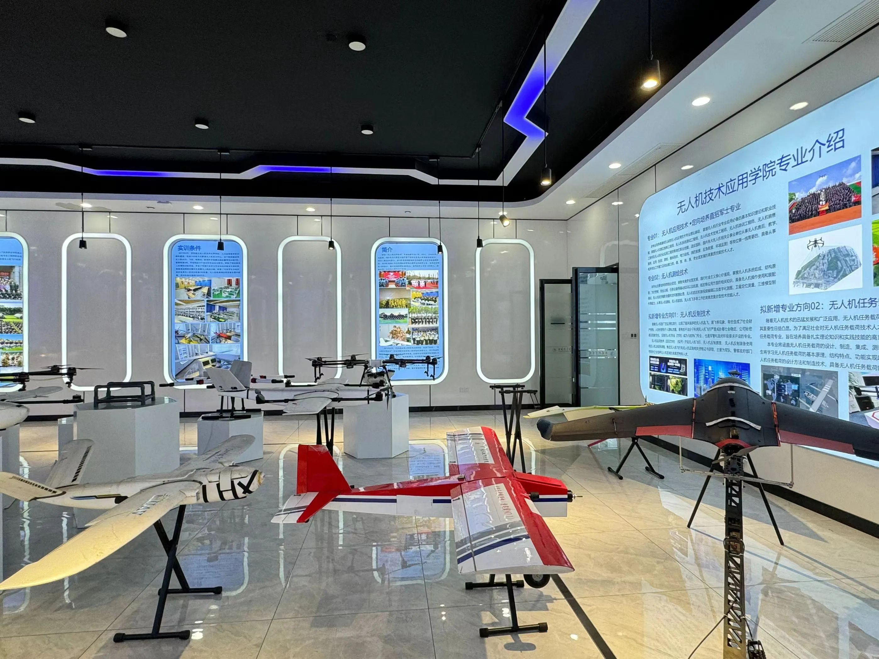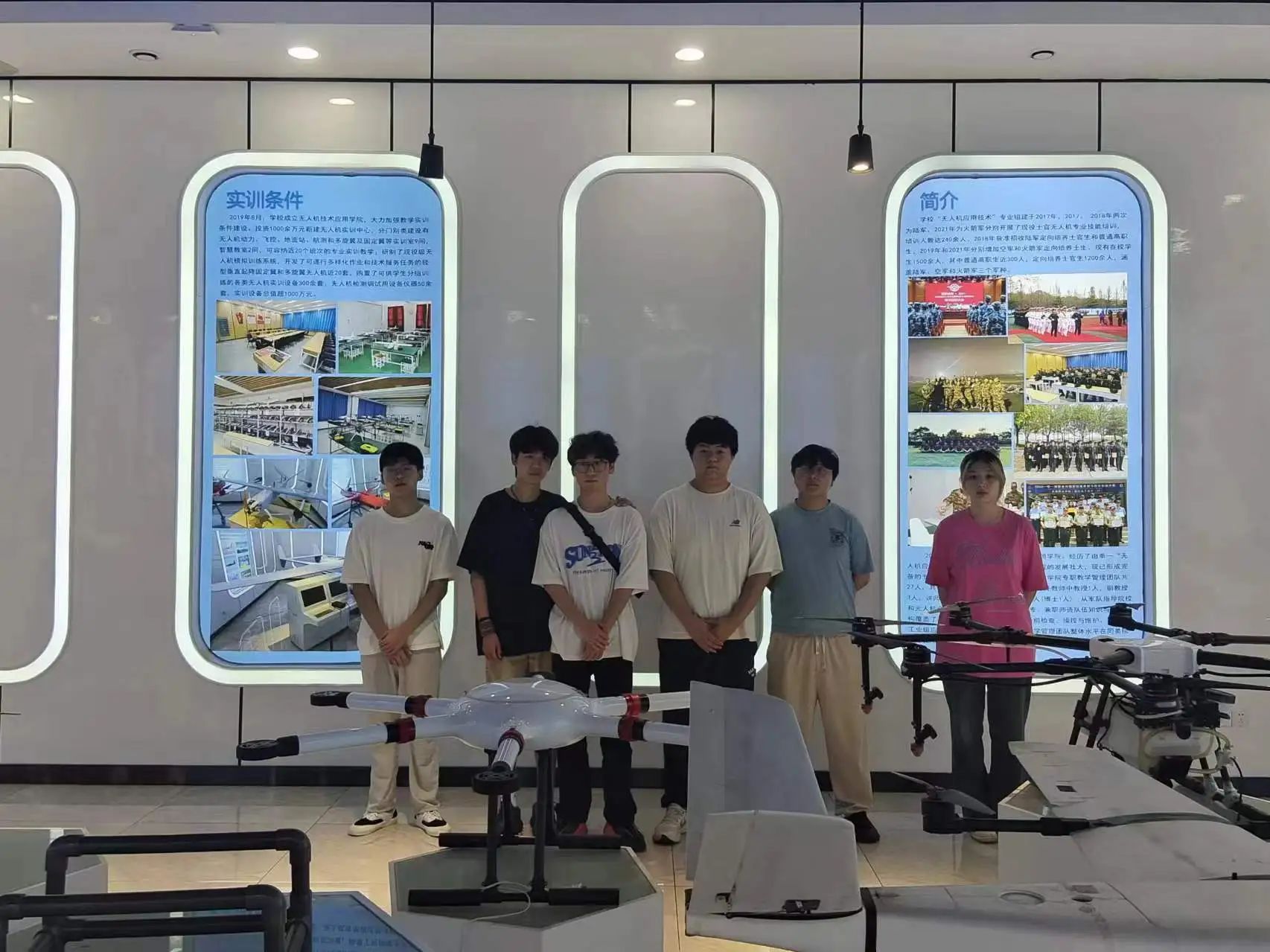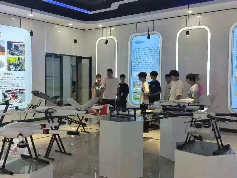 随后,友校同学带领我校同学进入无人机实训室参观,友校同学以模型讲解的形式对各种无人机进行逐一介绍。