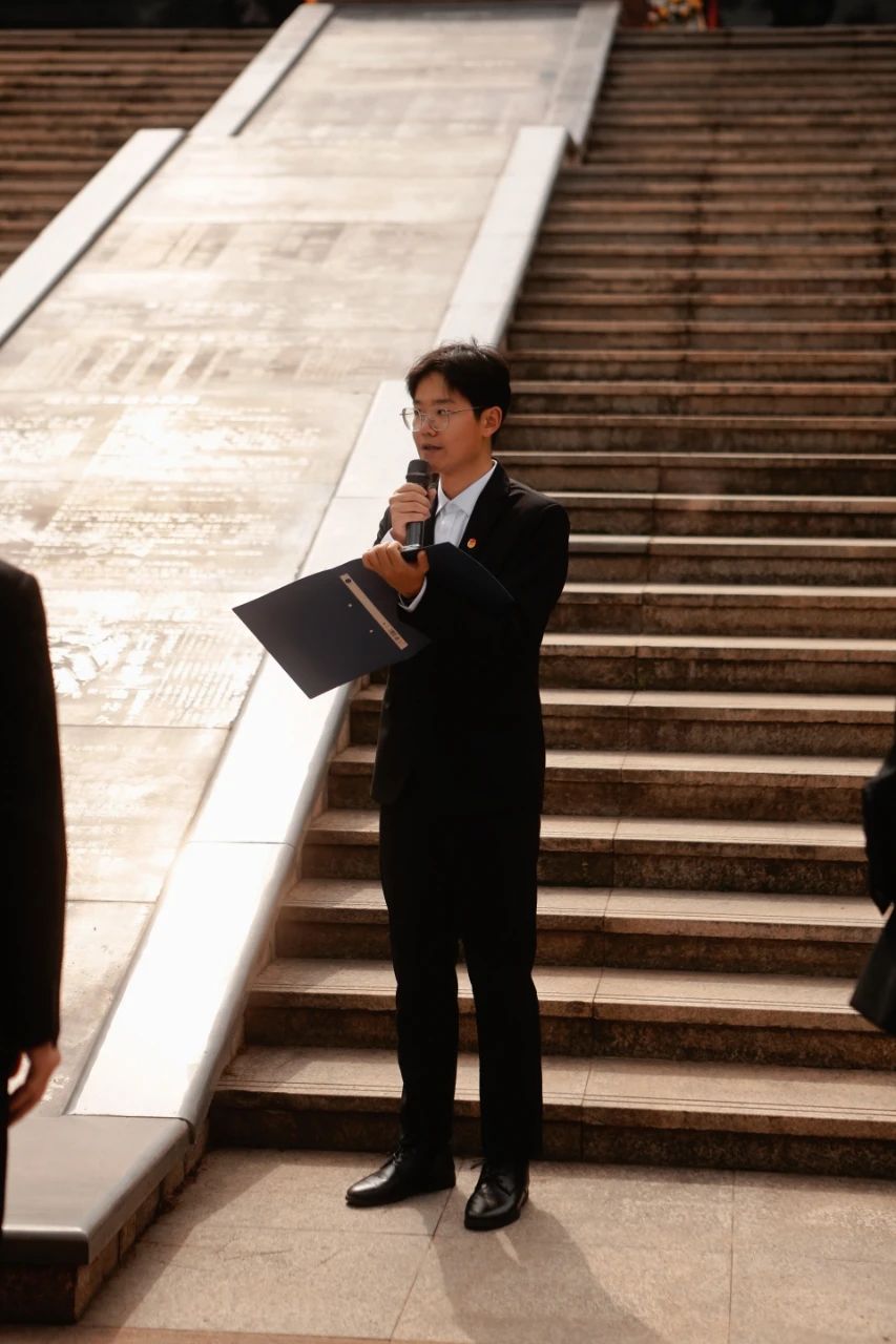 活动伊始,全体师生在庄严肃穆的革命烈士纪念碑前整齐列队,向先烈行注目礼并集体默哀三分钟。低沉的哀乐声中,师生们垂首致敬,共同追忆那段血与火的峥嵘岁月。随后,师生代表抬着素色花圈缓步上前,将花圈敬献在纪念碑基座前。
